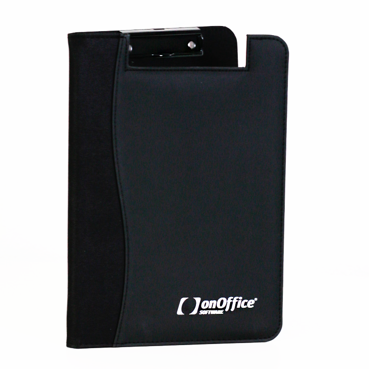 Sieht bei Meetings einfach immer gut aus: Die onOffice Konferenzmappe. Hier ist Platz für Notizen, Kugelschreiber, Visitenkarten und Flyer. Die Mappe ist der ideale Begleiter für jeden wichtigen Termin.